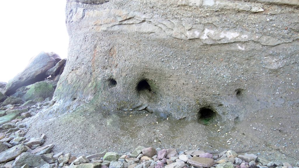 These holes were once occupied by tree trunks, dig ni a bit and you get bits and pieces of them (circa 300 milion years old).
