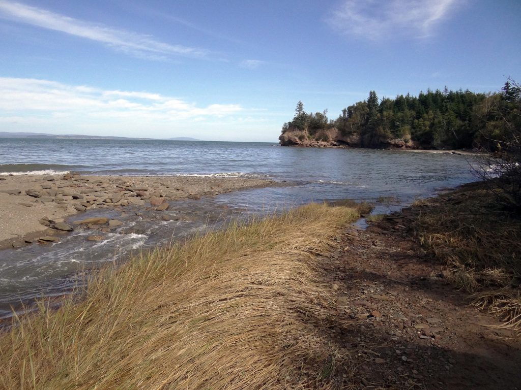 Ken tells us that the geology is similar to that at Joggins, but with different “chapters”. The exposed cliffs expose carboniferous deposits with various thickness of glacial til on top.