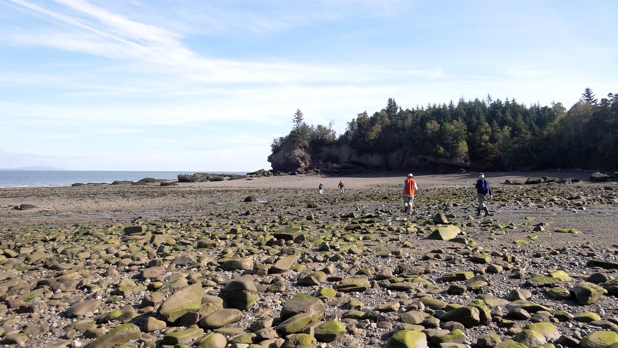 Ken tells us that the geology is similar to that at Joggins, but with different “chapters”. The exposed cliffs expose carboniferous deposits with various thickness of glacial til on top.